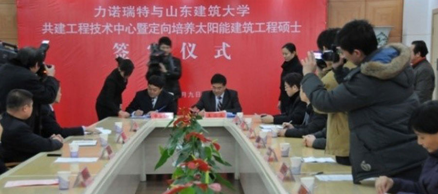 2009年1月9日,力諾瑞特與山東建筑大學(xué)再次合作,共同打造了太陽(yáng)能與建筑一體化實(shí)驗(yàn)室,推進(jìn)太陽(yáng)能與建筑一體化的創(chuàng)新和發(fā)展。并計(jì)劃培養(yǎng)國(guó)內(nèi)太陽(yáng)能與建筑一體化碩士班。實(shí)現(xiàn)了技術(shù)合作關(guān)系向深度研發(fā)協(xié)同關(guān)系的轉(zhuǎn)變;更實(shí)現(xiàn)單一合作模式向多角度合作模式的轉(zhuǎn)變。